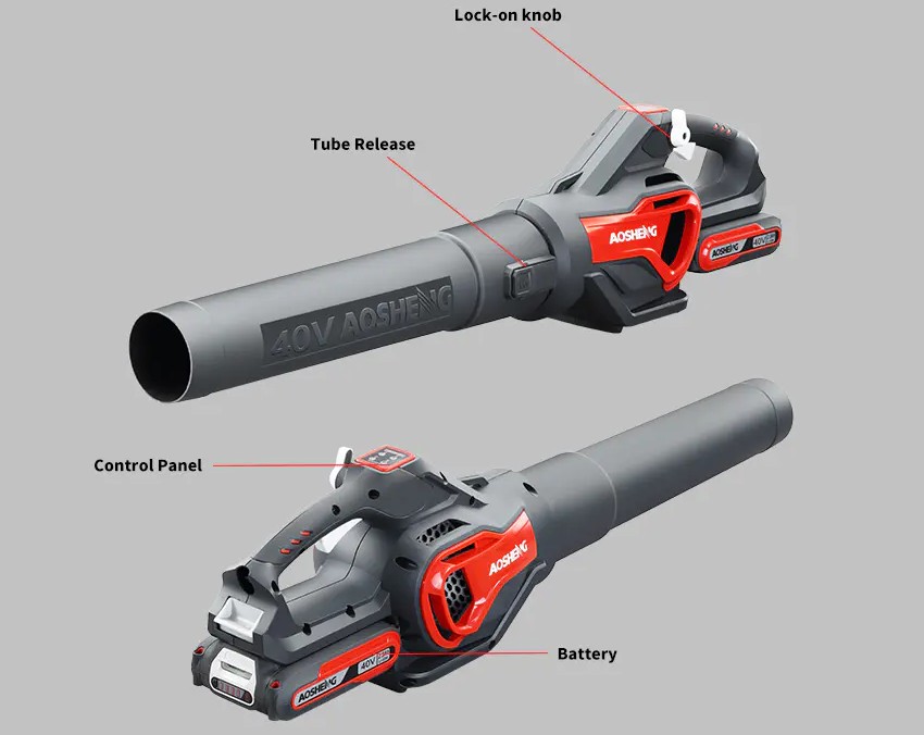 1. Nájdite spojenie medzi trubicou a fúkačom lístia s lítiovou batériou A40CF900HEB01 40 V: Na fúkacom lístia s lítiovou batériou A40CF900HEB01 40 V je toto spojenie zvyčajne umiestnené v prednej časti fúkača lístia v blízkosti výstupu vzduchu a je navrhnuté tak, aby bolo veľmi stabilné, aby počas používania ľahko nespadlo.