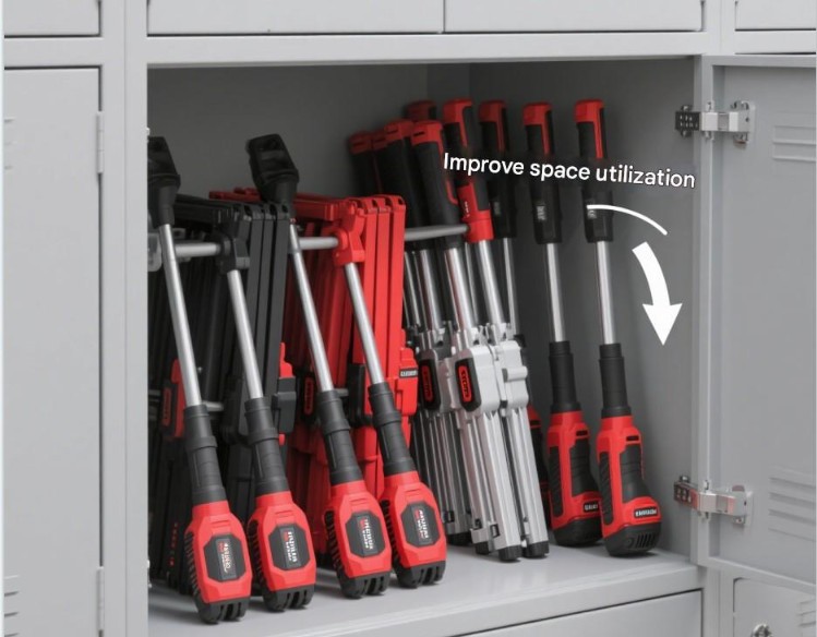 Vhodné pre rôzne skladovacie prostredia: Či už ide o domácu garáž, nástrojáreň alebo sklad na pracovisku, zariadenie s dizajnom sklopného hriadeľa sa dá ľahko prispôsobiť, vďaka čomu ho používatelia môžu pohodlne skladovať a spravovať podľa skutočných potrieb.