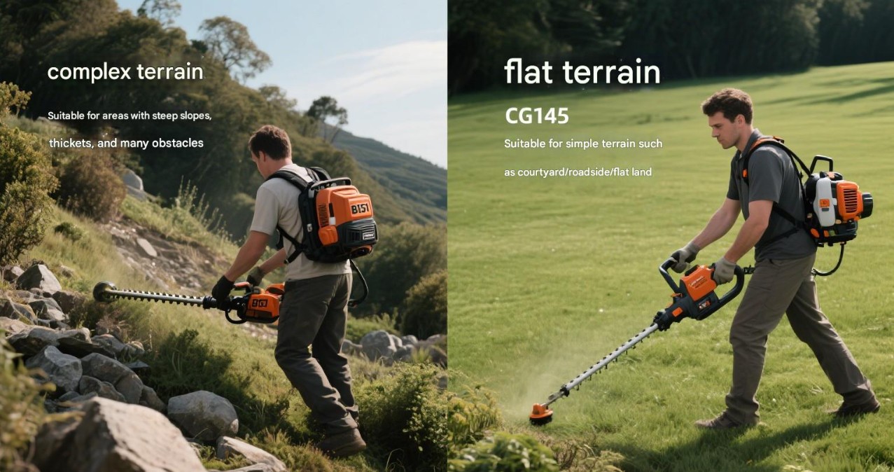 Prevádzka na rovnom teréne: Pri kosení na rovnom teréne si môžete vybrať ručnú kosačku, ako je krovinorez CG145 a krovinorez CG430B. Tieto modely sa ľahko obsluhujú a dokážu efektívne vykonávať úlohy kosenia na rovnom teréne.