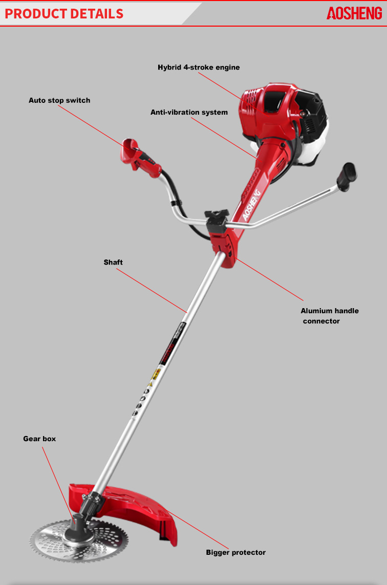 Profesionálny motor, sila. nízka spotreba, ľahké štartovanie. Otáčanie o 360° Pólová časť využíva kryt tlmiča. Ovládacia rukoväť sa môže otáčať o 180°, aby sa znížila absorpcia. Rukoväte p...