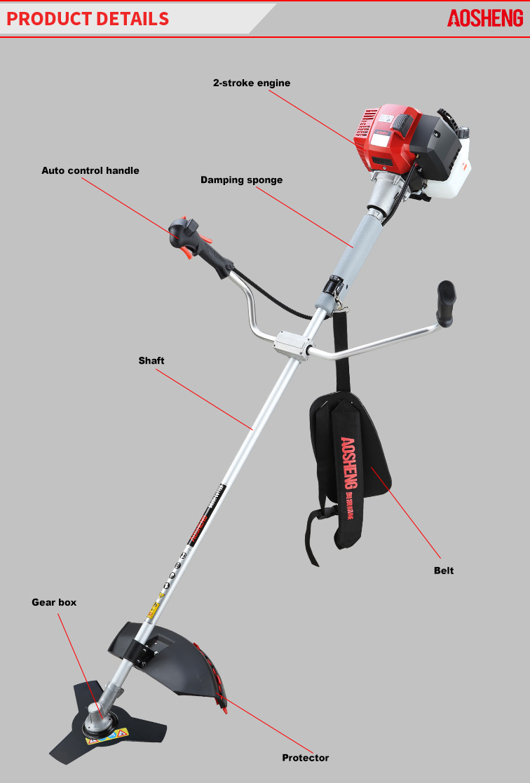 Profesionálny motor, sila. nízka spotreba, ľahké štartovanie. Otáčanie o 360° Pólová časť využíva kryt tlmiča. Ovládacia rukoväť sa môže otáčať o 180°, aby sa znížila absorpcia. Rukoväte p...