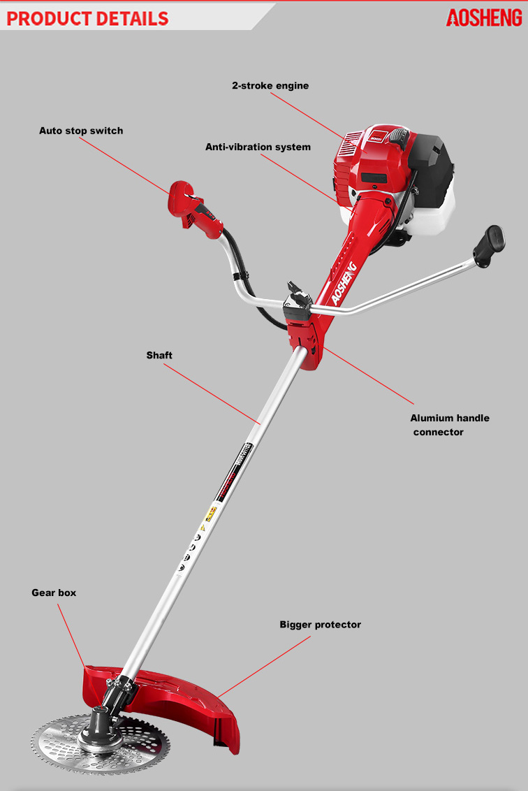 Vysoko výkonný motor so zdvihovým objemom 33 ccm. Profesionálne použitie otvára pustatinu Veľkosť trubice 26mm*1,5mm, pevný ohybný hriadeľ. Šírka rezu je 420 mm Životnosť viac ako 150 h...