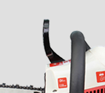 | 02OCHRANNÉ ZARIADENIE BRZDReakcia bŕzd je citlivá, zvyšuje bezpečnosť prevádzky. Predné a zadné riadidlá sú vyrobené v jedno, s jednoduchou a pevnou konštrukciou. Tlakom na zariadenie je možné reťazovú pílu zastaviť. |